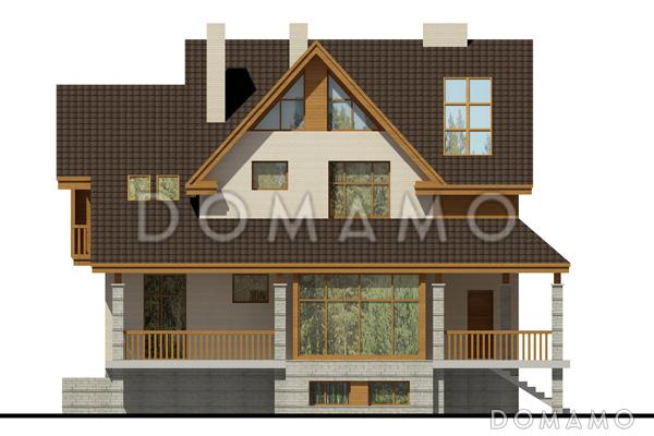 Проект большого коттеджа с цокольным этажом и мансардой, выполненного в европейском стиле. Основными украшениями здания являются декоративные элементы из деревянной вагонки и большие окна. На цокольном этаже дома расположена бильярдная и спортивный зал, а также кладовая и технические помещения. Первый этаж включает в себя три крытые террасы, одна из которых прекрасно подойдет для размещения мебели для отдыха. Также здесь расположена просторная кухня-столовая с выходом в гостиную, сауна и две жилых комнаты, в которых смогут разместиться гости. На втором этаже – четыре спальни, в трех из которых предусмотрены собственные балконы.