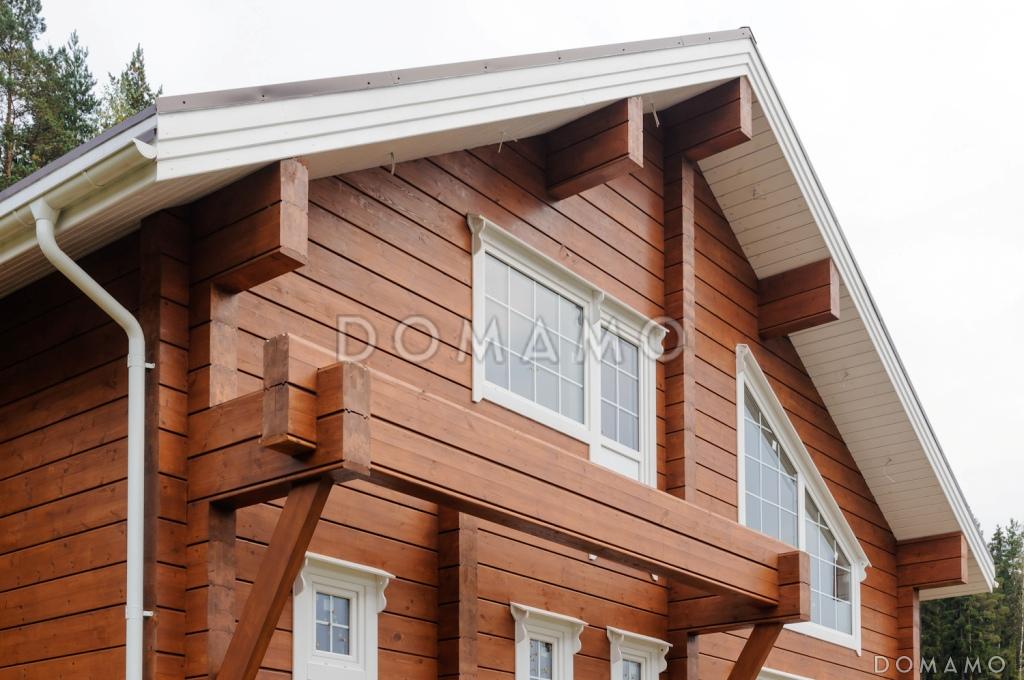 Предложение огромного дома из клееного бруса впечатляет не только своими габаритами и площадью в 260 м2, но также и своей вместительностью. В нем много света и простора, семья из 5 человек может спокойно располагаться в этой постройке и редко пересекаться друг с другом, у каждого из них будет своя отдельная зона отдыха. Расположение и площадь комнат радуют, а кухня-гостиная с двойным светом восхищает и никого не оставит равнодушным, а если учесть, что ее площадь составляет 73 м2, то можно организовать несколько зон для приема пищи и отдыха или отгородить еще одну комнату. На первом этаже кроме ванной есть также постирочная, спальня, вместительная гардеробная. Верхний этаж занимают 3 спальни внушительных габаритов, холл в 15,5 м2 и санузел.