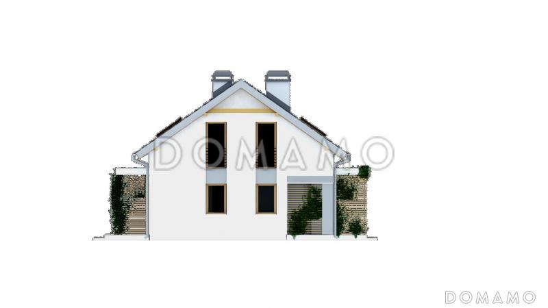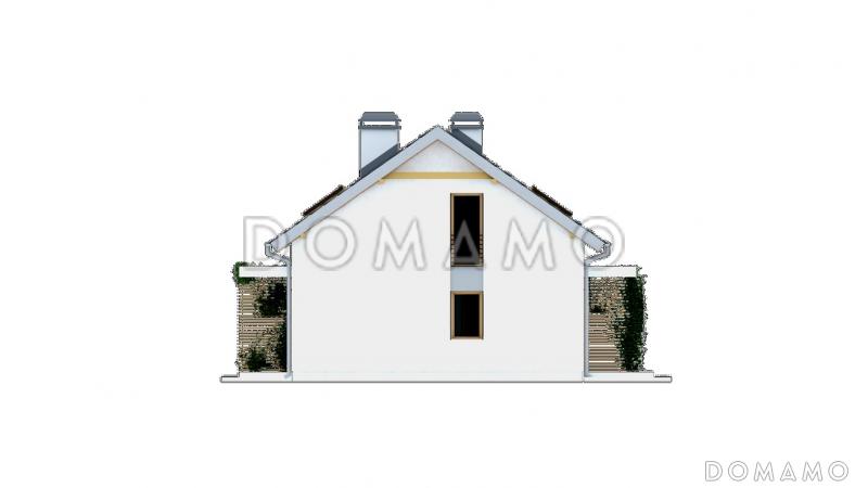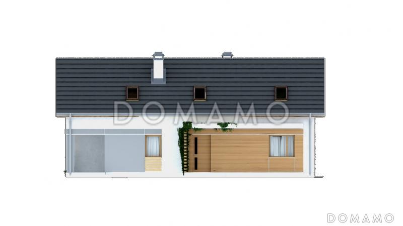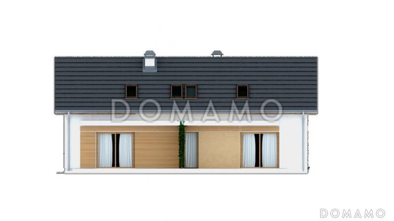 Проектный вариант в стиле минимализма, отлично смотрится как с другими городскими постройками, так и за городом. Экстерьер дома украшает мокрая штукатурка и деревянная вагонка, а на окнах второго этажа установлена кованая защита. Мансарда по этому проекту жилая, и потому дом можно считать двухэтажным. Его крылечко находится под навесом, из него попадаешь в прихожую, если свернуть направо там будет расположен санузел, за ним обширная кухня-гостиная, а налево — котельная, потом еще одна гостиная из нее можно попасть в спальню. К строению прилегает квадратная терраса, она крытая, на ней можно установить мебель для отдыха. На мансардном этаже предусмотрены три спальни, гардеробная и два санузла.