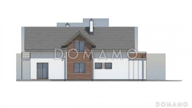 Проект узкого, но длинного особняка понадобиться тем, у кого не совсем стандартный участок. Такой дом станет украшением земельного надела, расположенного в городе или за его чертой, в нем могут комфортно проживать до 5 человек. Светло-серые стены дополнены темными вставками на некоторых стенах, перилами балкона, входными дверями и гаражными воротами. На первом его этаже пристроен гараж, в него можно попасть сразу с тамбура, вторая дверь с коридора ведет в холл, из которого можно посетить санузел или кухню-столовую, она имеет два прохода в гостиную. Поднимаясь на второй этаж по удобной пологой лестнице, попадаешь в холл, из него три двери ведут в спальни, а две — в санузел.