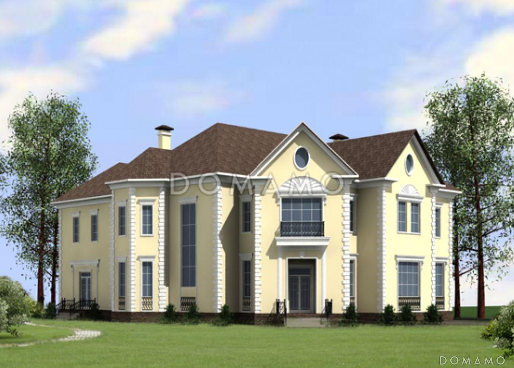 Проект особняка площадью 565 кв.м подходит для строительства загородного особняка на семью из 4-6 человек. Здание из кирпича украшают русты по углам, колонны на балконе, эркеры и аккуратные овальные чердачные окошки.