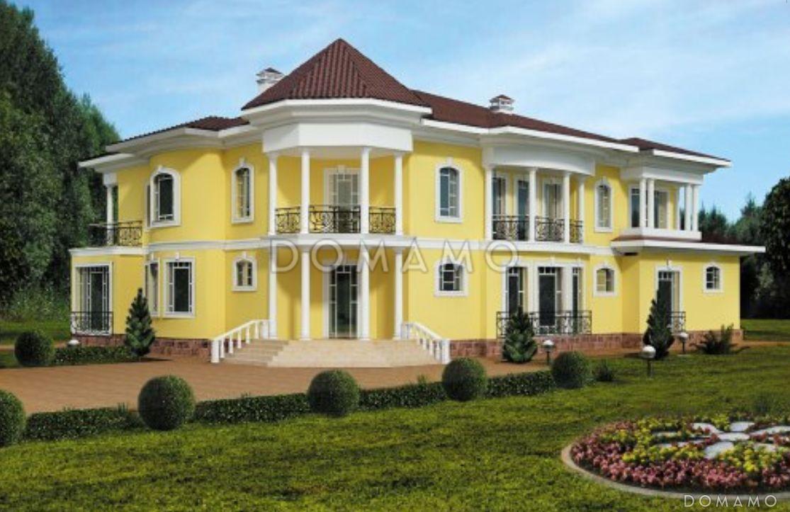 Роскошная усадьба с бассейном для комфортной жизни семьи из нескольких поколений. Экстерьер украшают панорамные окна, колонны и изящные ограждения балконов.