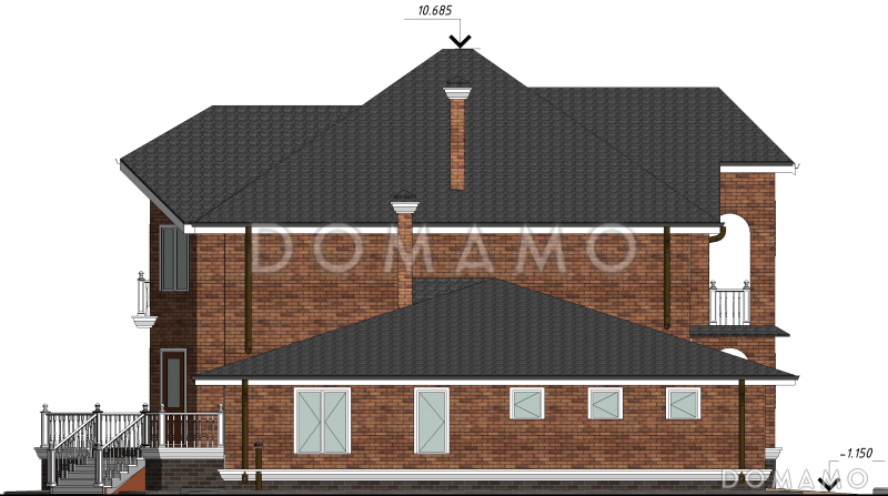 Компания Domamo предлагает проект двухэтажного дома с цокольным этажом, гаражом, эркером и террасой D2149. Общая площадь - 480 м2, размер - 19.96х19.34 м. Фундамент - ленточный монолитный, кровля - металлочерепица, внешняя отделка - облицовочный кирпич. Для заказа проекта или внесения изменений свяжитесь с нами с помощью форм обратной связи на сайте или по телефону +7 (831) 231-05-01.