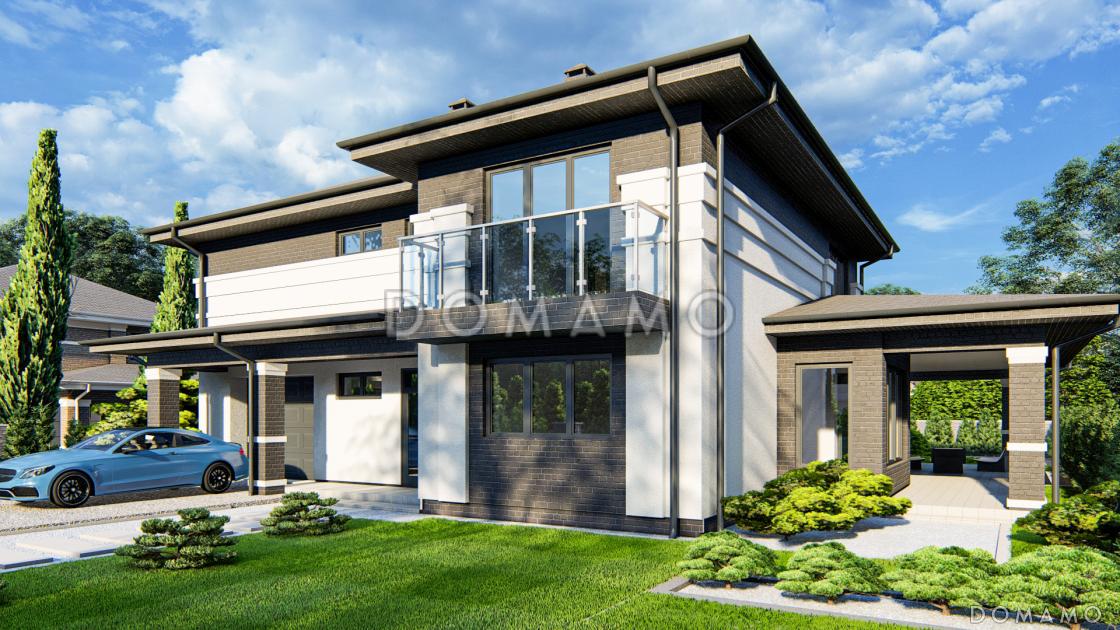 Компания Domamo предлагает проект двухэтажного дома с гаражом, большой крытой террасой, просторной хозяйской спальней с балконом D3787. Общая площадь - 271 м2, размер - 18.46х16.26 м. Фундамент - ленточный монолитный, кровля - металлочерепица, внешняя отделка - облицовочный кирпич мокрая штукатурка. Для заказа проекта или внесения изменений свяжитесь с нами с помощью форм обратной связи на сайте или по телефону +7 (831) 231-05-01.