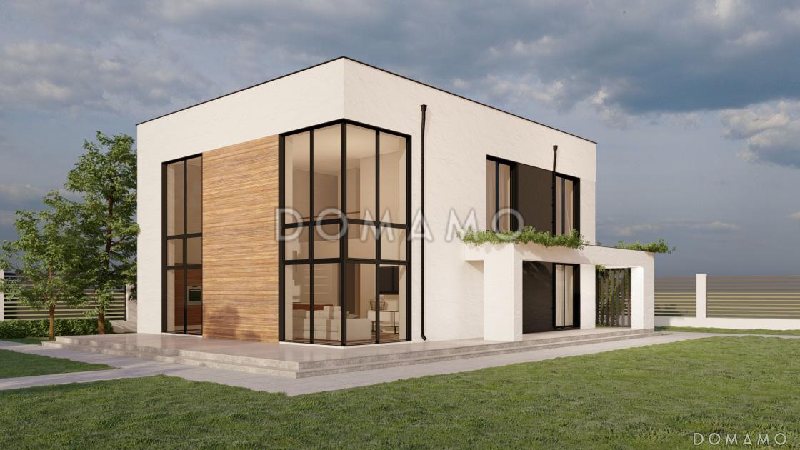 Компания Domamo предлагает проект двухэтажного дома в стиле хай-тек с мастерской-гаражом, очень просторной террасой и вторым светом D5622. Общая площадь - 254 м2, размер - 17.4х11.9 м. Фундамент - малозаглубленные ростверки, кровля - рулонная кровля, внешняя отделка - мокрая штукатурка. Для заказа проекта или внесения изменений свяжитесь с нами с помощью форм обратной связи на сайте или по телефону +7 (831) 231-05-01.