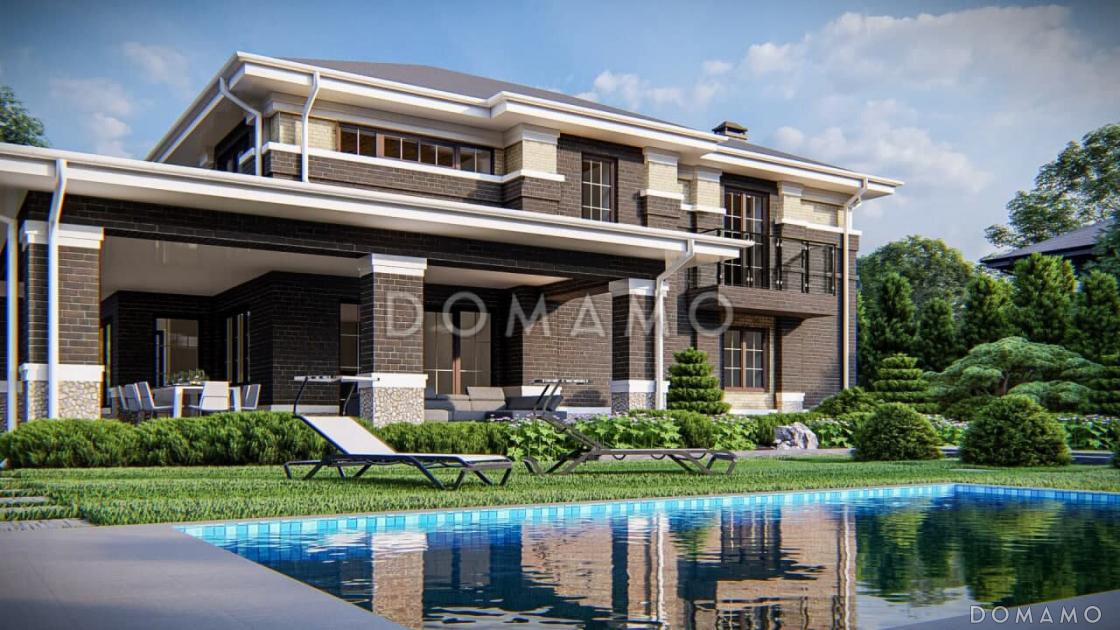 Компания Domamo предлагает проект двухэтажного дома с крытой террасой, гаражом, большой кухней и гостиной, балконами, спальней на первом этаже D5832. Общая площадь - 271 м2, размер - 18.46х16.26 м. Фундамент - ленточный монолитный, кровля - металлочерепица, внешняя отделка - облицовочный кирпич. Для заказа проекта или внесения изменений свяжитесь с нами с помощью форм обратной связи на сайте или по телефону +7 (831) 231-05-01.