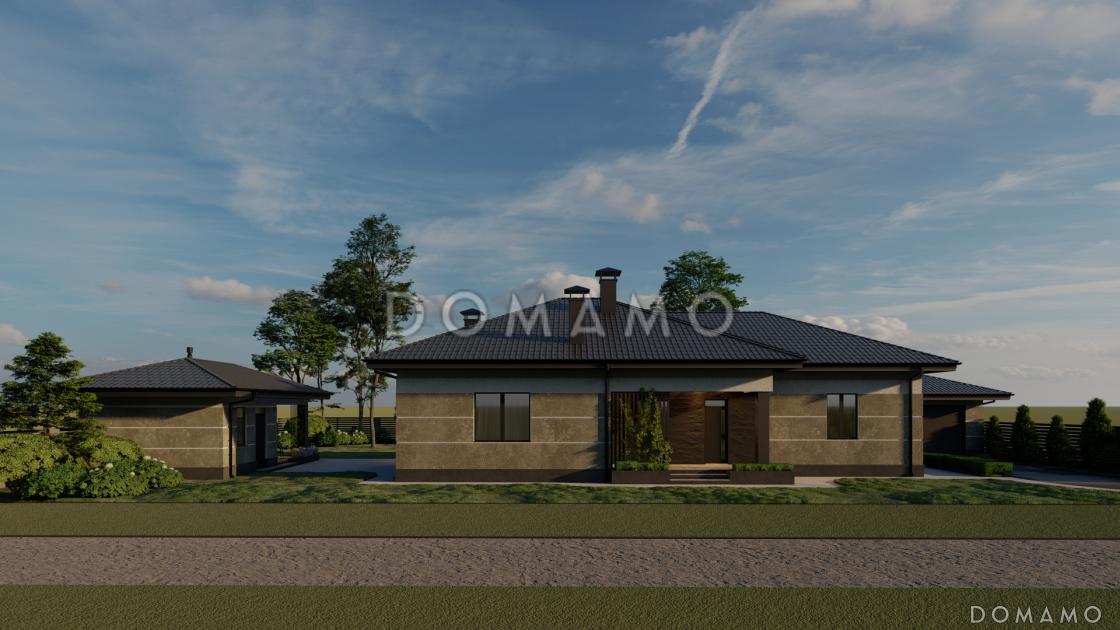 Компания Domamo предлагает проект одноэтажного газобетонного дома с двумя спальнями, гардеробными, кладовой на кухне и крытой террасой D6127. Общая площадь - 165 м2, размер - 19.1х12.4 м. Фундамент - малозаглубленные ростверки, кровля - металлочерепица, внешняя отделка - мокрая штукатурка. Для заказа проекта или внесения изменений свяжитесь с нами с помощью форм обратной связи на сайте или по телефону +7 (831) 231-05-01.