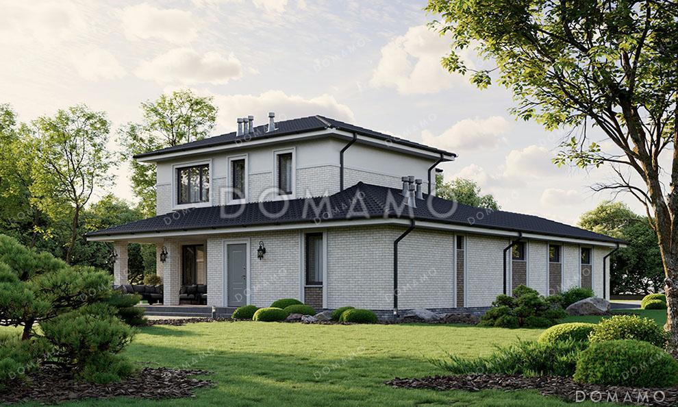 Компания Domamo предлагает проект дома с гаражом на две машины, сауной и тремя спальнями D6344. Общая площадь - 200 м2, размер - 19.47х13.93 м. Фундамент - монолитная ж/бетонная плита, кровля - металлочерепица, внешняя отделка - облицовочный кирпич. Для заказа проекта или внесения изменений свяжитесь с нами с помощью форм обратной связи на сайте или по телефону +7 (831) 231-05-01.
