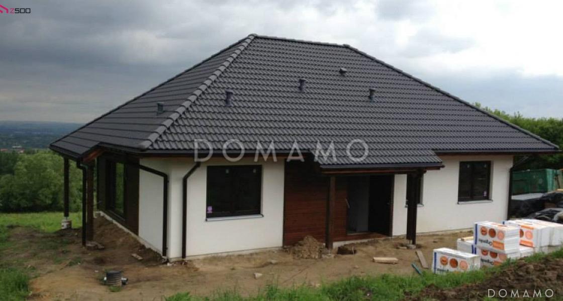 Одноэтажный каркасный дом с тремя спальнями подойдет для пары с двумя детьми. Стильный коттедж в современном стиле имеет четырехскатную крышу, не задерживающую снег и имеющую широкие выступы для защиты стен и окон от осадков.