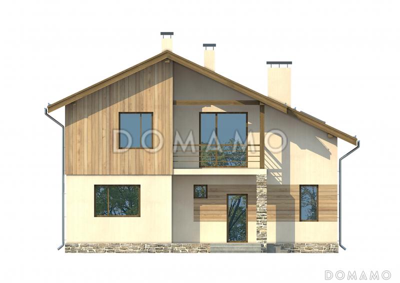 Проект лаконичного коттеджа с четырьмя спальнями подойдет для строительства загородного дома на семью из 4-5 человек. Здание из пенобетона облицовано деревянной вагонкой, а местами просто оформлено штукатуркой.
