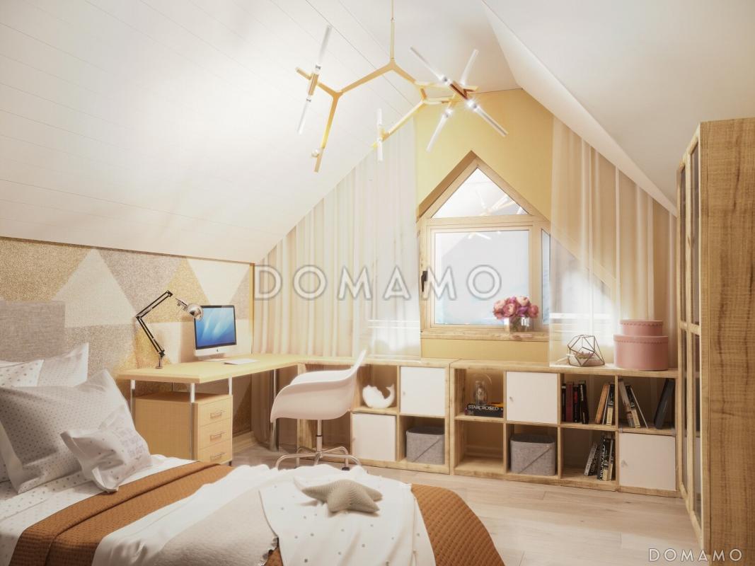 Компания Domamo предлагает проект дома с тремя спальными комнатами на мансардном этаже D800. Общая площадь - 123 м2, размер - 10.6х8.6 м. Фундамент - монолитная ж/бетонная плита, кровля - гибкая черепица, внешняя отделка - мокрая штукатурка облицовка камнем. Для заказа проекта или внесения изменений свяжитесь с нами с помощью форм обратной связи на сайте или по телефону +7 (831) 231-05-01.