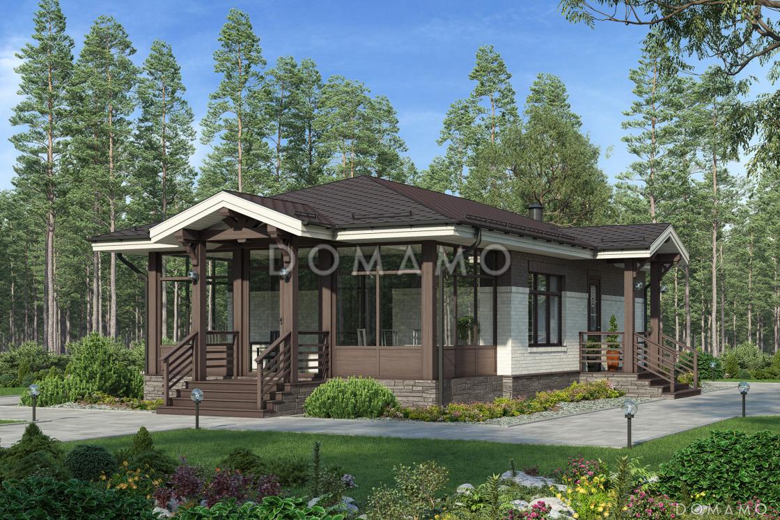 Проект бани с верандой, гостиной с кухней-столовой, парной и душевой / 1 Проект бани с верандой, гостиной с кухней-столовой, парной и душевой / 2