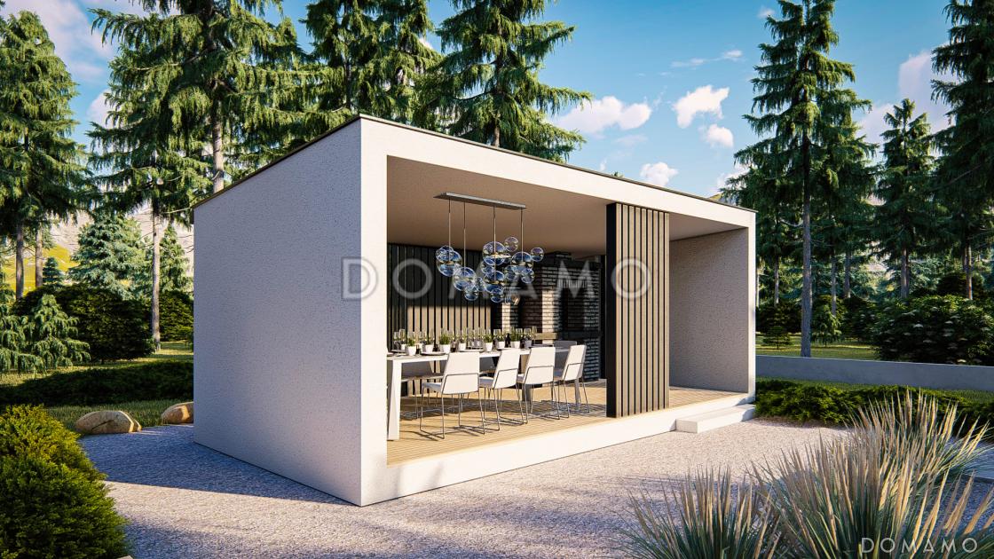 Главная Готовые проекты беседок Проект современной беседки из газобетона с камином