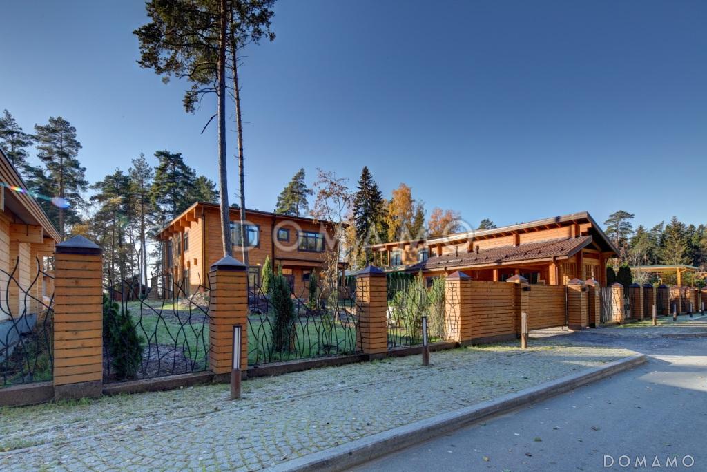 Почти половину первого этажа занимает гостиная площадью 51 кв.м и кухня-столовая с выходом на террасу. Выделена зона с сауной и комнатой отдыха. Сразу около входной двери расположена комната, в которой будет удобно сделать гостевую спальню. Вспомогательные помещения включают в себя котельную, постирочную, гардероб, 2 санузла. На втором этаже размещены 3 спальни, одна из которых хозяйская с санузлом и гардеробом. В четвертой жилой комнате на этом этаже можно сделать кабинет. В спальнях есть балконы и панорамные окна.