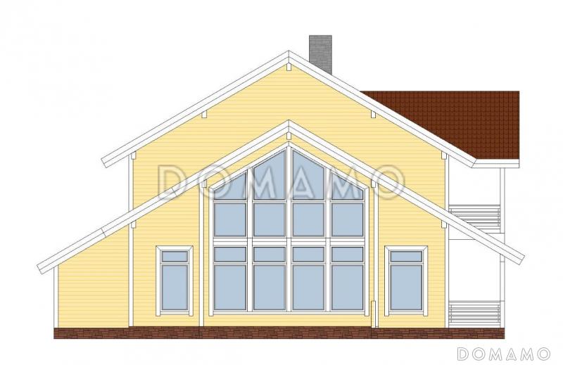 Просторный двухэтажный дом с четырьмя спальнями подойдет для комфортной жизни семьи из 4-5 человек. Дом построен из пенобетона, снаружи – облицовочный кирпич. Вдоль одной стены расположена крытая терраса площадью 45,5 кв.м, с нее дом ведут два входа. Первый этаж традиционно занимают комнаты для совместного проведения времени всей семьей, а также хозяйственные помещения. Рядом с главным входом есть гостевая спальня, а в противоположной стороне этажа предусмотрена гостиная с высокими окнами и вторым светом. Также первый этаж по проекту включает в себя сауну, комнату отдыха, душевую, санузел, сервисную и техническое помещение с отдельным входом позади дома. Планировка второго этажа лаконична – помещений немного, но за счет этого они гораздо просторнее. Здесь расположены три спальни по 20 кв.м и ванная.