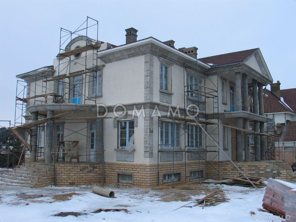 Проект элегантного особняка в классическом стиле, где сможет разместиться большая семья из нескольких поколений. Экстерьер дома украшают большие колонны, окна и эркеры.