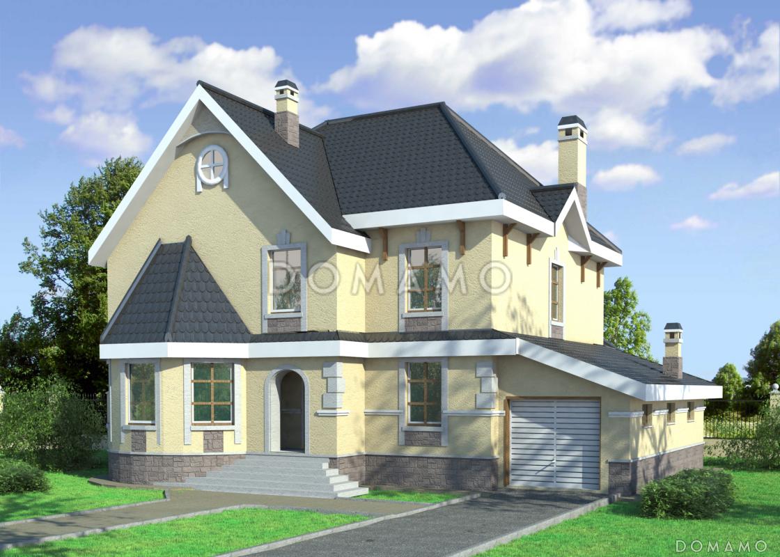 Компания Domamo предлагает проект кирпичного дома с эркером в виде полубашенки на главном фасаде D1726. Общая площадь - 231 м2, размер - 15.7х15.0 м. Фундамент - ленточный заглубленный из фбс, кровля - металлочерепица, внешняя отделка - мокрая штукатурка. Для заказа проекта или внесения изменений свяжитесь с нами с помощью форм обратной связи на сайте или по телефону +7 (831) 231-05-01.