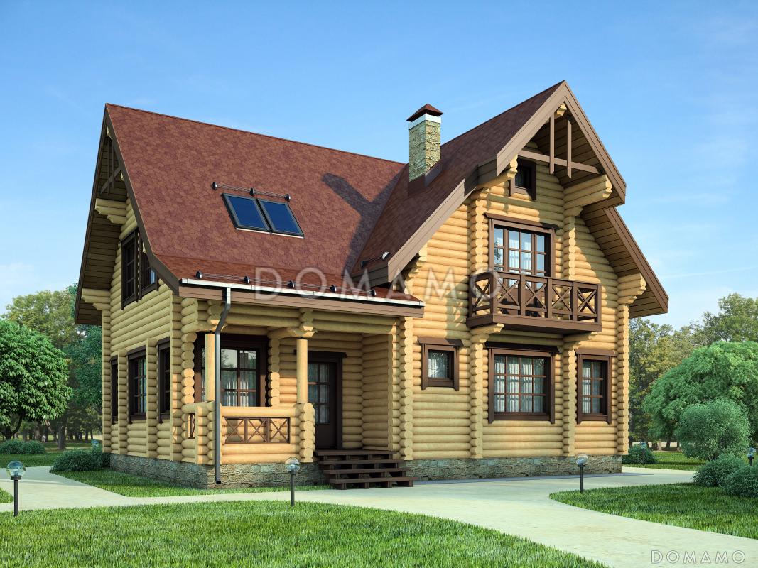 Проект дома из дерева с просторной верандой, четырьмя просторными спальными комнатами / 1 Проект дома из дерева с просторной верандой, четырьмя просторными спальными комнатами / 2