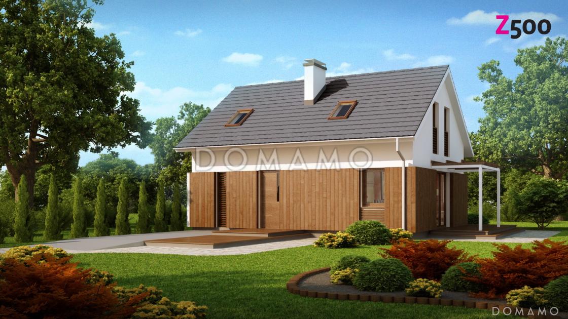 Главная Проекты домов Проект одноэтажного мансардного дома из газобетона с навесом для автомобиля