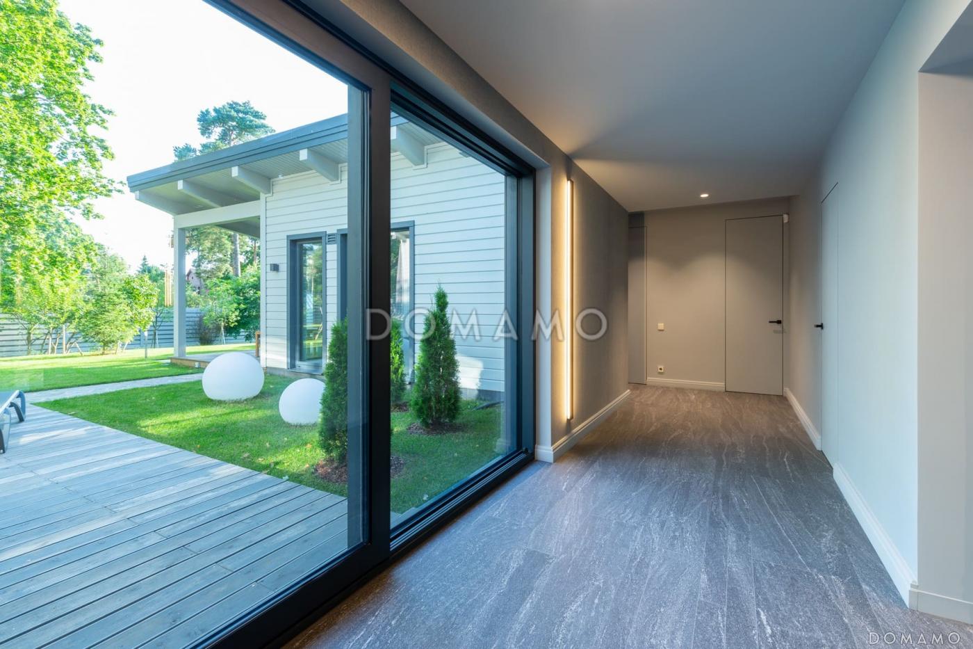 Проект одноэтажного каркасного дома в скандинавском стиле. Отличительная особенность — наличие внутреннего дворика за счет П-образной формы дома.