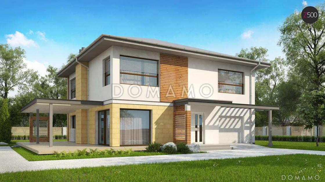 Проект простого комфортного двухэтажного дома из газобетона со вторым светом, тремя спальнями и гаражом / 1 Проект простого комфортного двухэтажного дома из газобетона со вторым светом, тремя спальнями и гаражом / 2