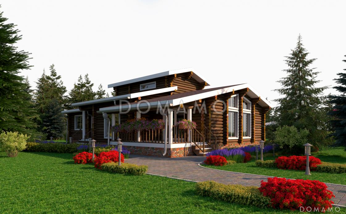Современный дом из оцилиндрованного бревна для круглогодичного проживания. Возможно изменение планировок.