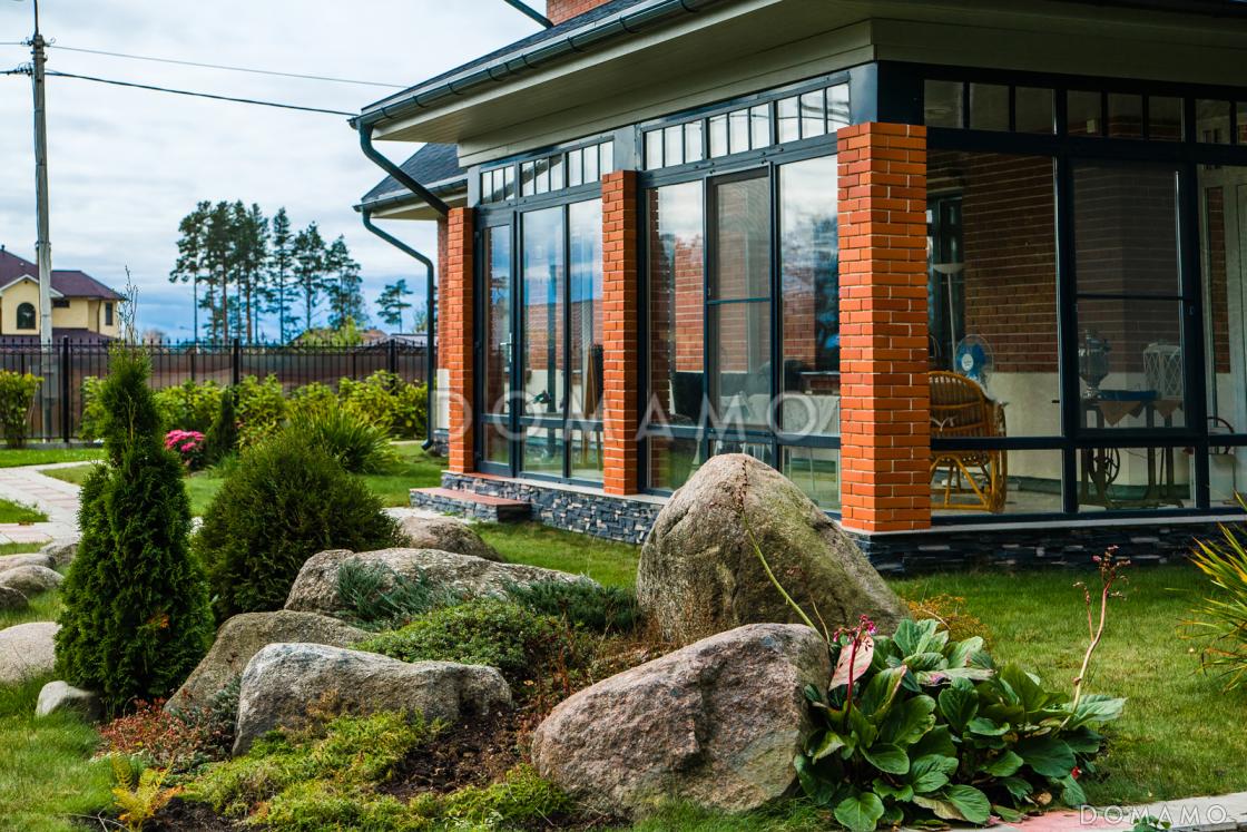 Компания Domamo предлагает проект дома из газобетона с панорамным остеклением на веранде, гаражом и навесом для авто D499. Общая площадь - 313 м2, размер - 14.8х14.3 м. Фундамент - утепленная шведская плита (ушп), кровля - металлочерепица, внешняя отделка - облицовочный кирпич мокрая штукатурка. Для заказа проекта или внесения изменений свяжитесь с нами с помощью форм обратной связи на сайте или по телефону +7 (831) 231-05-01.