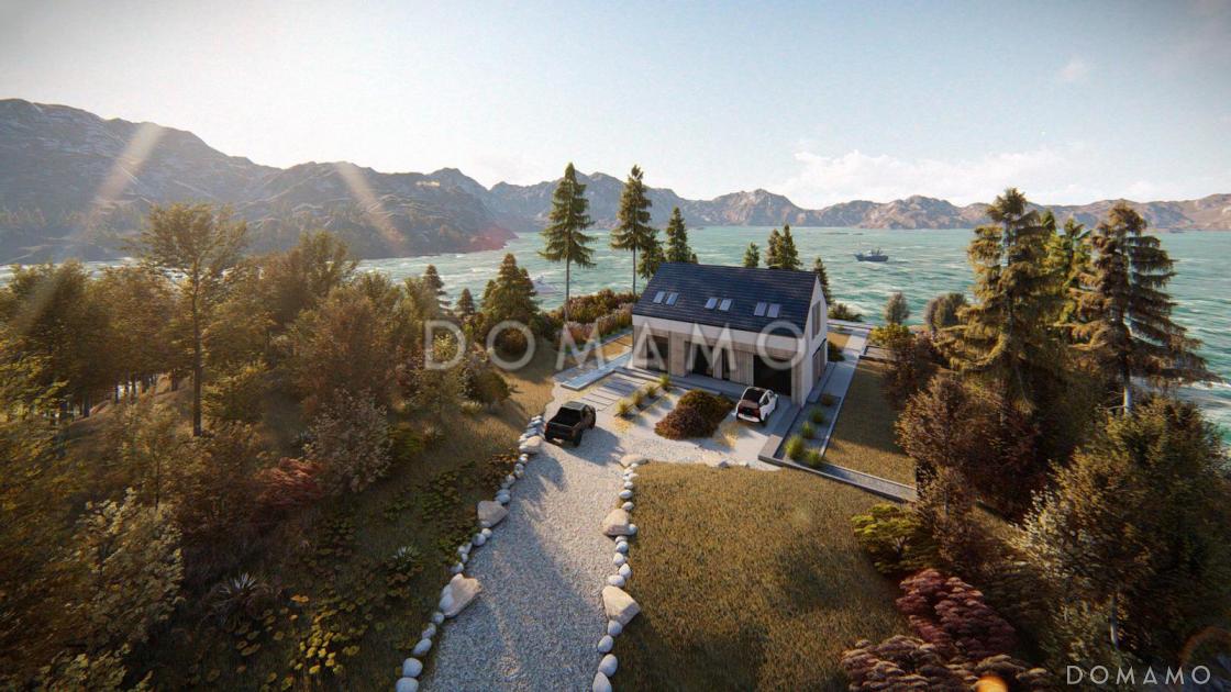 Компания Domamo предлагает проект мансардного дома с гаражом, панорамным остеклением, просторной кухонной зоной, прачечной D5135. Общая площадь - 207 м2, размер - 12.96х11.16 м. Фундамент - ленточный монолитный, кровля - металлочерепица, внешняя отделка - деревянная вагонка мокрая штукатурка. Для заказа проекта или внесения изменений свяжитесь с нами с помощью форм обратной связи на сайте или по телефону +7 (831) 231-05-01.