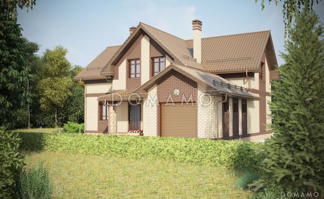 Компания Domamo предлагает проект красивого двухэтажного дома по технологии лстк c большим гаражом и террасой D5405. Общая площадь - 208 м2, размер - 18.68х14.66 м. Фундамент - ленточный монолитный, кровля - металлочерепица, внешняя отделка - облицовочный кирпич. Для заказа проекта или внесения изменений свяжитесь с нами с помощью форм обратной связи на сайте или по телефону +7 (831) 231-05-01.