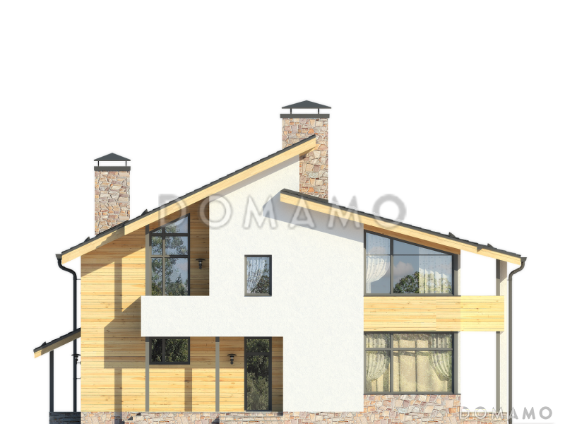 Проект элегантного дома площадью 281,4 м2 для семьи из четырех-пяти человек. Здание строится из пенобетона, декорируется снаружи камнем и фасадными панелями под дерево. Индивидуальность экстерьеру придает асимметричная, разноуровневая крыша.