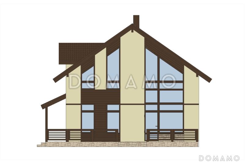 Проект мансардного дома из кирпича с крытой террасой, вторым светом и островным камином / 1
