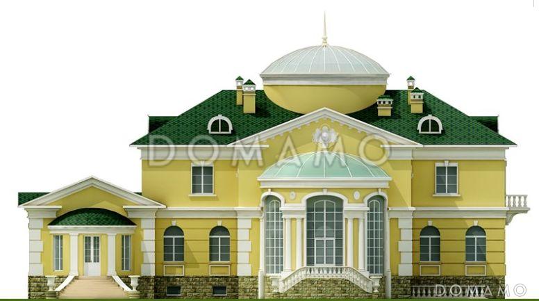 Проект особняка с пятью спальнями для комфортной жизни семьи из нескольких поколений. Здание в классическом стиле украшают парадное крыльцо со скульптурами львов, арочные окна с частым переплетом, колонны и другие декоративные элементы, присущие этому архитектурному направлению.