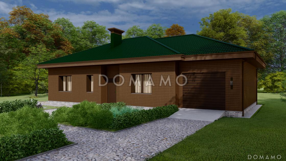 D5802 Проект одноэтажного дома с пристроенным гаражом и крытой террасой