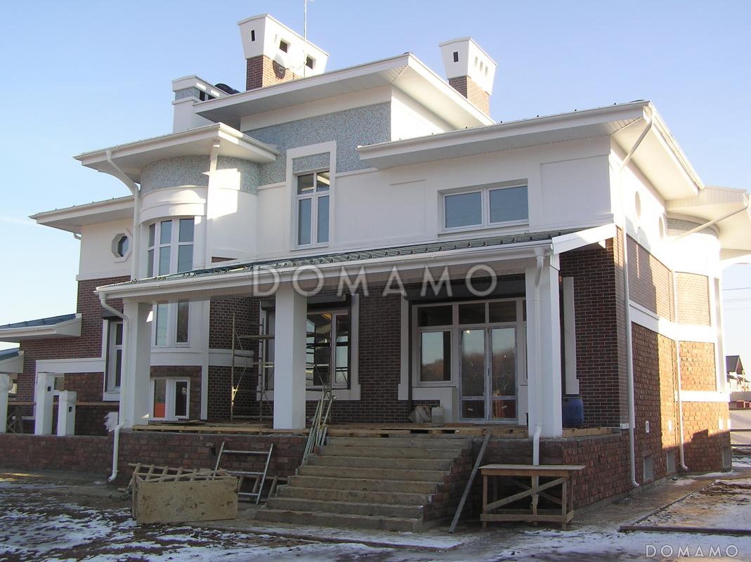 несмотря на впечатляющий внешний вид, здание имеет компактный объем, что позволяет использовать проект в плотной застройке коттеджных поселков,