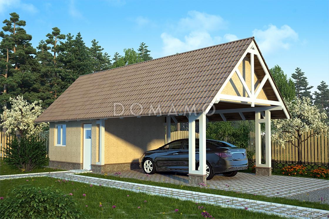 Главная Проекты гаражей Проект навеса для одной машины с хозблоком